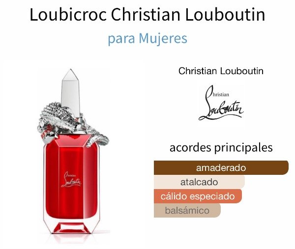 -Loubicroc de Christian Louboutin es una fragancia de la familia olfativa Oriental Especiada para Mujeres. Loubicroc se lanzó en 2020. La Nariz detrás de esta fragrancia es Daphné Bugey. La Nota de Salida es mirra; la Nota de Corazón es cipriol (nagarmota); la Nota de Fondo es sándalo.