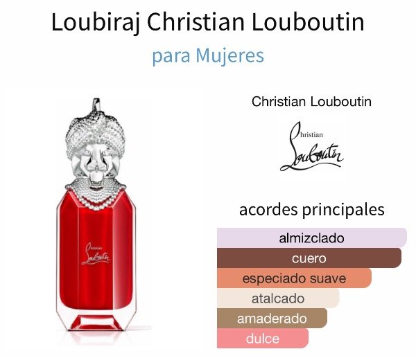 -Loubiraj de Christian Louboutin es una fragancia de la familia olfativa Cuero para Mujeres. Loubiraj se lanzó en 2020. La Nariz detrás de esta fragrancia es Daphné Bugey. La Nota de Salida es pimienta rosa; la Nota de Corazón es gamuza; la Nota de Fondo es cedro.