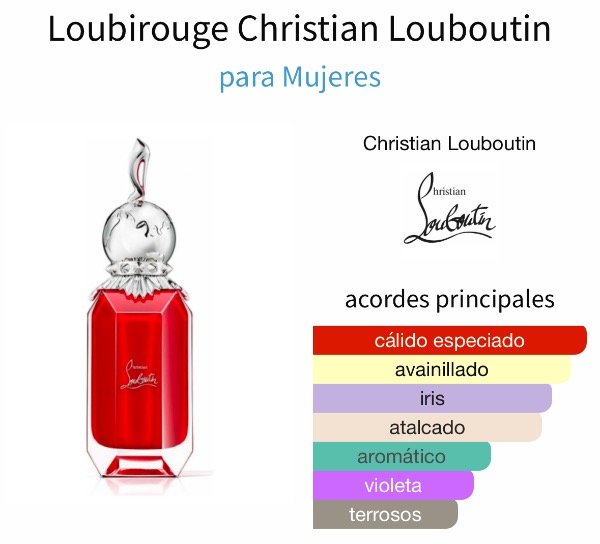 -Loubirouge de Christian Louboutin es una fragancia de la familia olfativa Oriental Especiada para Mujeres. Loubirouge se lanzó en 2020. La Nariz detrás de esta fragrancia es Marie Salamagne. La Nota de Salida es cardamomo; la Nota de Corazón es iris; la Nota de Fondo es vainilla.
