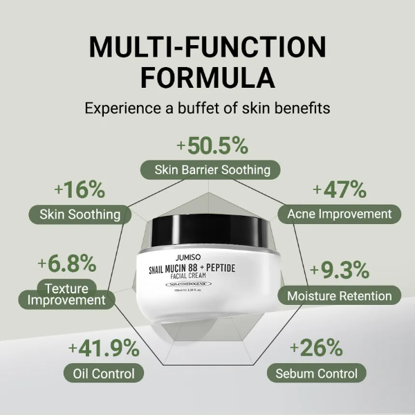 Una crema facial nutritiva formulada con un 88% de filtrado de secreción de caracol con propiedades antiinflamatorias para reparar la piel dañada, al tiempo que aumenta el nivel de humedad de la piel y la mantiene tersa.