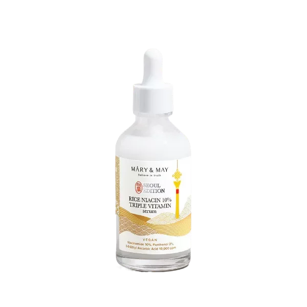 Mejore su rutina de cuidado de la piel con el Sérum Triple Vitamínico de Niacina de Arroz al 10%, una potente solución iluminadora que proporciona un cutis claro y luminoso. Con un 10% de niacinamida, triple vitamina y glutatión, este sérum mejora la luminosidad y la vitalidad de la piel. Potenciado con 10.000 ppm de extracto de arroz Hiami orgánico de Corea, enriquecido con vitaminas B, aminoácidos y ácido ferúlico, nutre y revitaliza la piel, dejándola sana y resplandeciente.