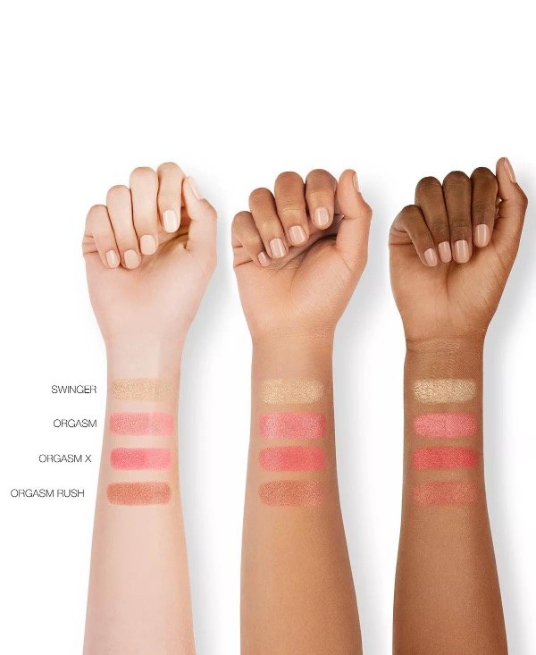 Con el icónico tono rosa melocotón Orgasm, esta paleta incluye además un dúo de tonos rosados dimensionales y un iluminador dorado brillante. La fórmula iluminadora y reflectante de luz garantiza que cada color se vea vibrante y radiante, aportando ese brillo saludable que todos buscan.